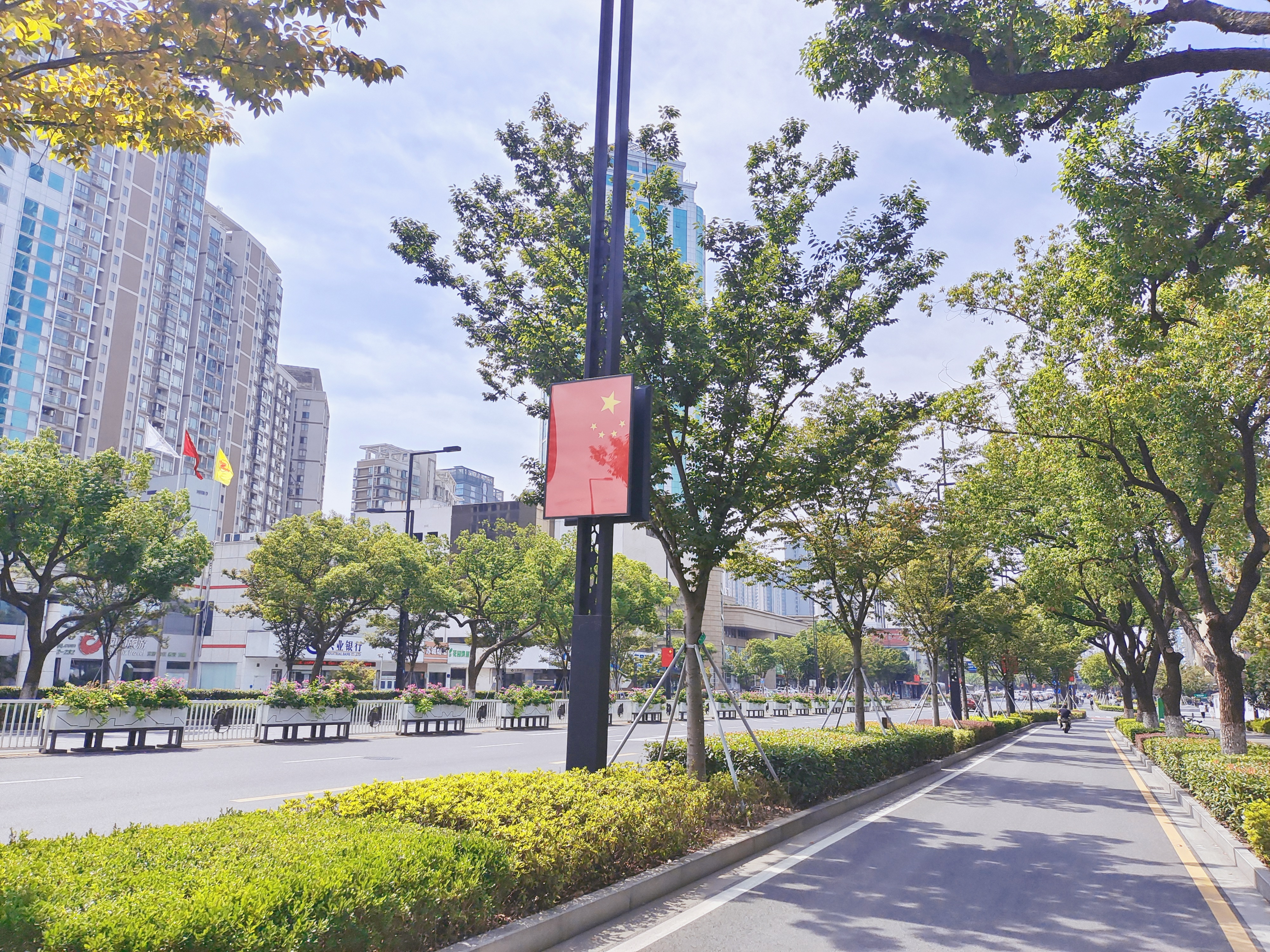 534处路灯杆,1068面国旗。近期,一些出行市民发现,在狮山商务创新区的狮山路、竹园路、滨河路、晋源路、青石路、横山路、淮海街、黄埔街,以及何山桥、狮山桥等路段与点位,马路两侧的路灯杆上视线范围随处可见喜庆的国旗装扮与点缀,整个辖区完全沉浸在一片飘动的红色海洋氛围当中,也让出行市民们提前分享到“十一”国庆的城市之美。
