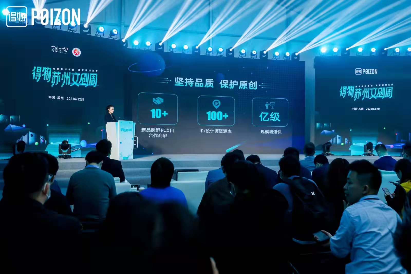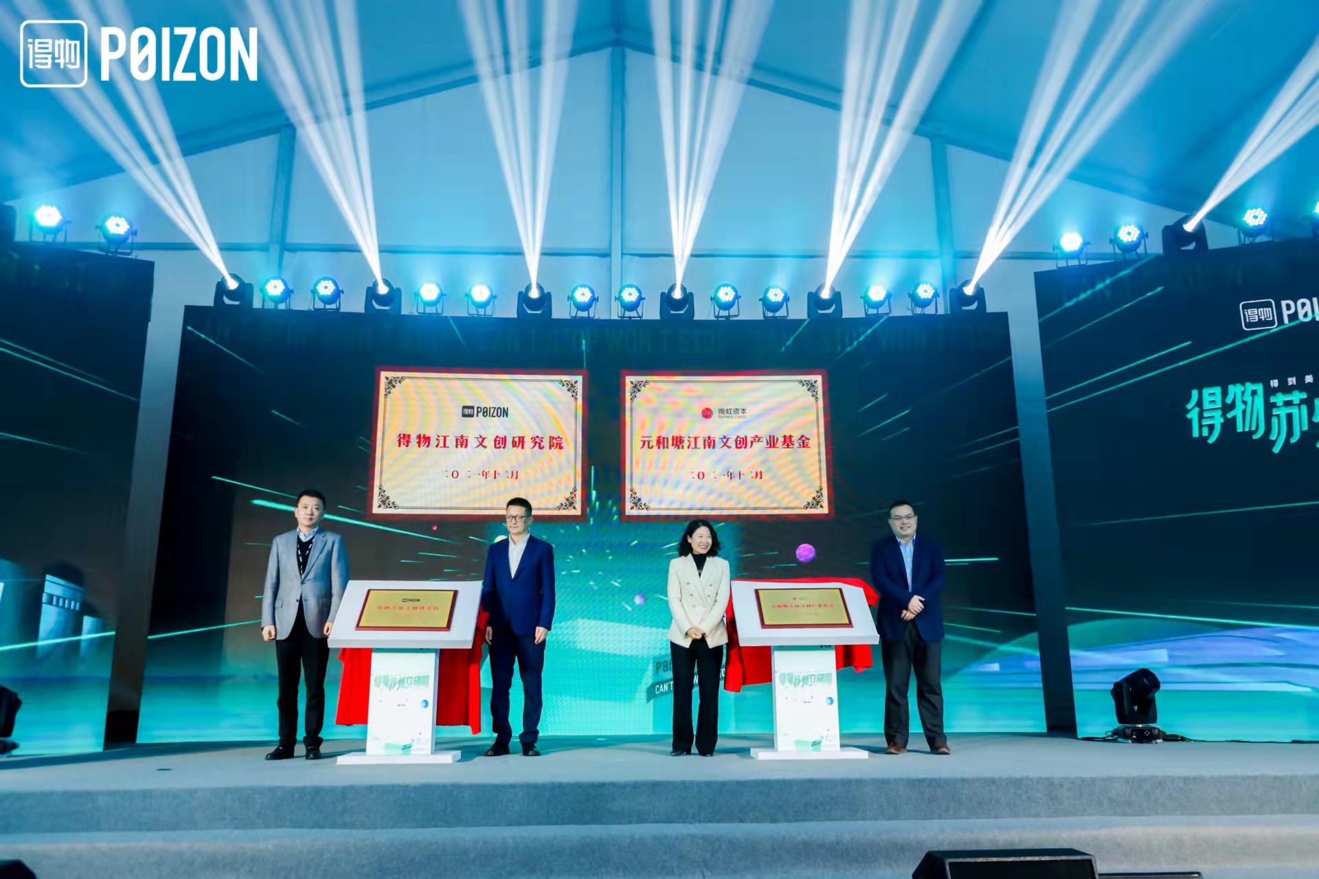 活动现场,得物江南文创研究院及元和塘江南文创产业基金揭牌。得物江南文创研究院聚焦江南文化IP的创造性转化,搭建国潮品牌方和优秀设计从业人员相互选择的孵化平台,帮助国潮文化创意企业提升在原创内容生产、设计和商业模式创新上的能力,打造苏州文创产业高质量发展的策源地。