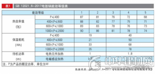 与电饭锅现行能效标准相比,新修订的标准中增加了对节能产品(即能效等级达到1级和2级的电饭锅)的保温能耗要求,通过观察表1参数可以发现,电饭锅新版能效标准中节能产品保温能耗值大大低于保温能耗限定值。此外,电饭锅新版能效标准不仅对保温能耗提出了更高的标准,对于待机功率也有了新的要求。新国家标准中除了电热元件加热产品待机功率指标有所提高外,还新增了电磁感应加热产品待机功率指标(见表1)。