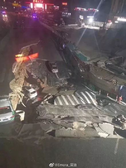 路过者的行车记录仪,恰好拍到了塌陷的经过,可以清楚看到有车陷落。