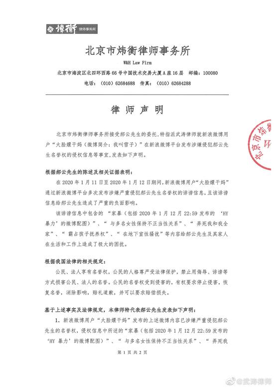 1月12日早上,歌手郝云通过微博否认妻子指控的家暴,并表示是妻子在争夺儿子抚养权对他进行污蔑。郝云发长文透露3大讯息,郝云与妻子事件详情起底,两人到底发生了什么事,郝云与妻子各执一词,到底谁说的是真的?一起去看看两人之间为何闹成这个地步。