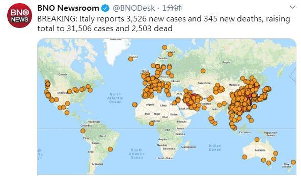 当地时间3月17日18时意大利卫生部公布最新疫情数据,意大利现有新冠病毒患者26062例,死亡2503例,治愈2941例,累计确诊感染新冠病毒总人数为31506例,较3月16日18时新增3526例,新增345例死亡病例。
