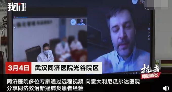 此前,武汉同济医院光谷院区多位专家,就已经通过视频,向意大利医院分享治疗经验。