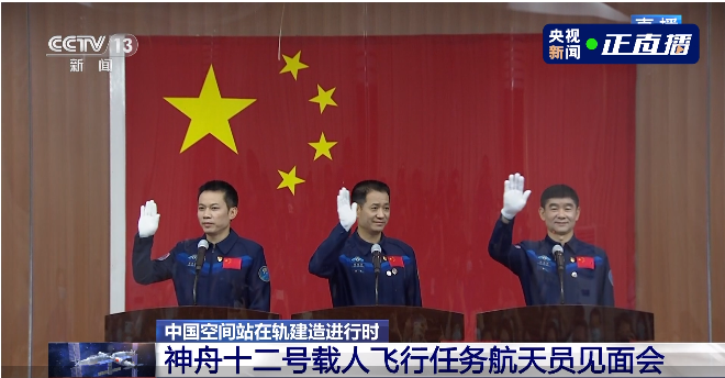 北京时间今天(16日)上午,3名航天员在酒泉卫星发射中心问天阁与中外媒体记者集体见面,并回答记者提问。