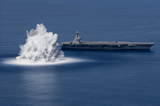 外媒最新报道,美军航母又出大事,18日,距离佛罗里达海岸约100英里的试验海域,美国最新型“福特”号航母进行了冲击试验。美国海军在距离“福特”号100多米外的海域引爆了数千磅炸药,爆炸引发的冲击波相当于3.9级地震,场面相当壮观。