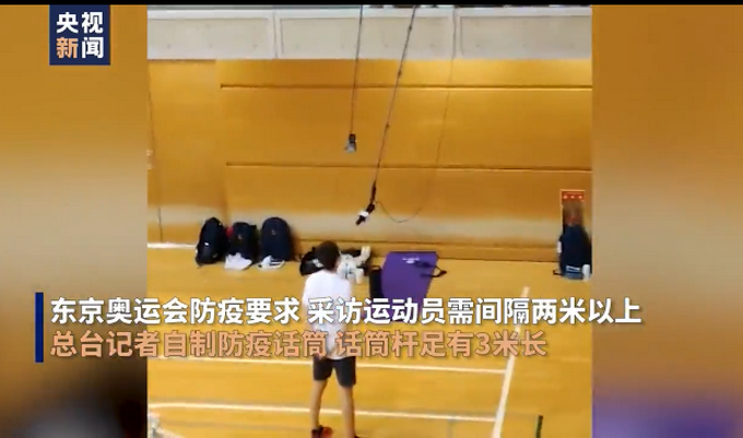 随着日本东京奥运会开幕式的临近,各个国家的代表团陆续抵达日本,据报道。此次东京奥运会防疫要求采访运动员需间隔两米以上,总台记者使出浑身解数,自制防疫话筒,话筒杆足有3米长,比人还高!