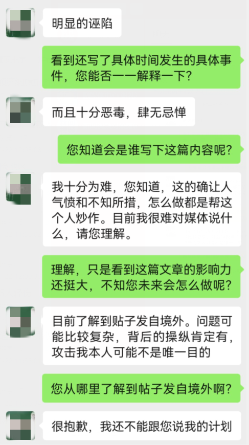 时某说该帖子发自境外,问题可能比较复杂,背后可能有人在操作。